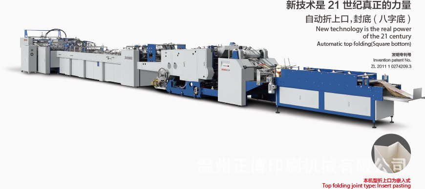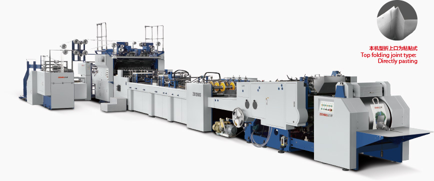 ZB1200CT-430全自動單張紙紙袋機,自動壓痕,自動貼頭卡,折上口,糊筒,糊底,打孔,成袋。紙袋質(zhì)量好,速度快,歡迎新老顧客前來參觀選購。