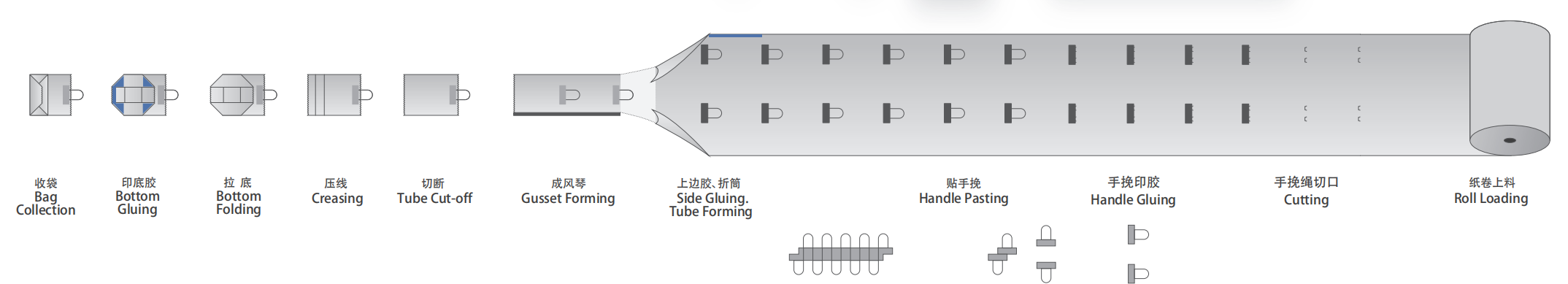 本設(shè)備采用卷筒進料方式,主要用于生產(chǎn)環(huán)保手提袋和無手挽的環(huán)保紙袋。 本設(shè)備技術(shù)與國際同步,采用伺服驅(qū)動控制,具有智能化程度高、生產(chǎn)效率高、成品合格率高等特點,適合環(huán)境食品包裝袋大規(guī)模生產(chǎn),也適應(yīng)多品種小批量的生產(chǎn)模式,滿足不同規(guī)格和不同訂單數(shù)量的紙袋生產(chǎn),是一款非常理想的卷筒環(huán)保袋紙袋機。